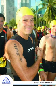 “Comecei a treinar corrida sozinho, sem qualquer orientação. Não demorou muito e comecei a sentir dores na perna direita. A famosa canelite. Resolvi, então, comprar uma bike para variar os exercícios. Falei com um amigo que já pedalava e ele me indicou a Equipe Márcia Ferreira. Procurei-a e em outubro de 2012 me juntei à equipe, pedalando e correndo. A Márcia me falou do triathlon e aos poucos comecei a treinar natação, que é de longe a minha pior modalidade.