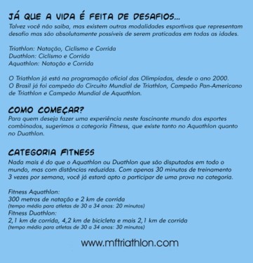 Você corre? Ótimo, mas você pode mais. Pode correr e nadar ou correr e pedalar numa mesma prova. Certamente, depois de ler isso você já se imagina fazendo triatlo. Por que não? Já ouviu falar nos circuitos fitness de aquatlon