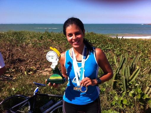A Laís é uma atleta da equipe que mora no Espírito Santo. Ela participou pela primeira vez de um short triathlon e foi justamente no Pan americano ( amador).